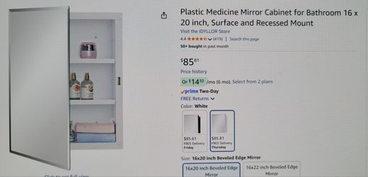 Plastic Medicine Vanity Cabinet With Mirror 16x20$30Mesa, AZ