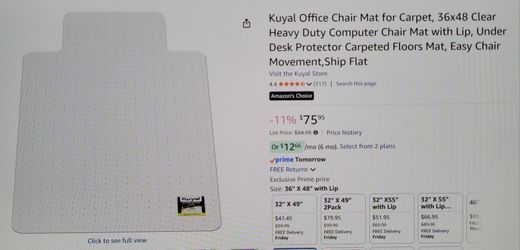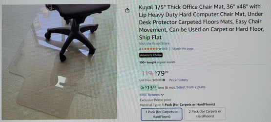 1/5" Thick Office Chair Mat, 36x48 With Lip$30Mesa, AZ