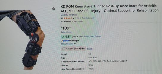 Hinged Post Op Knee Brace For Arthritis ACL MCL or PCL Injury $40Mesa, AZ