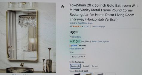 Gold Color Frame Mirror 20" x 30"$30Mesa, AZ