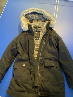 Hollister black Women Faux Fur lined Cozy Parka Jacket With Fur Trimmed Hood, size Large$50Rcho Santa Fe, CA