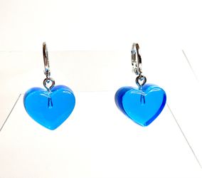 Blue Heart Earrings Silver Huggies Hoops Dangle like Gum Drops$8Kingston, GA