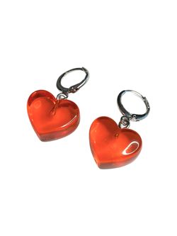 Tangerine Red Heart Earrings Silver Huggies Hoops Dangle like Gummy Drops$10Kingston, GA