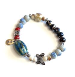 Silver Butterfly Bracelet Blue White Red Brown Elastic Stretchy Ceramic Beaded$12Kingston, GA