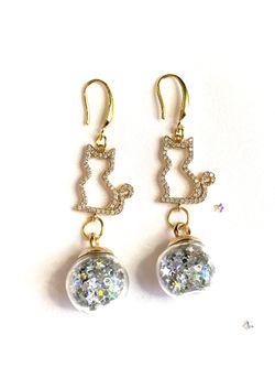 Gold Cat Earrings Zirconia 2.25” Drop Ornaments Dangle Handmade $12Kingston, GA