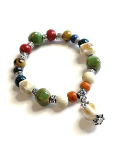Bohemian Bracelet Green Tan Silver Orange Blue Ceramic Beads Stretchy$12Kingston, GA