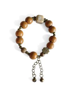 Jingle Bells Bracelet Terracotta Orange Speckled Ceramic Boho Beaded Stretchy $12Kingston, GA