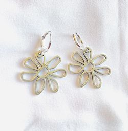 Silver Flower Earrings 925 Silver Huggies Hoops Daisy Dangle$10Kingston, GA