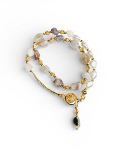 Crystal Gold Pearl Bracelet Gem Stone Beaded Double Layer 6-7” Stretchy$14Kingston, GA