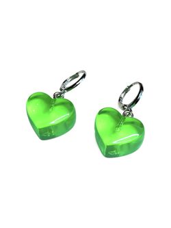 Green Heart Earrings Silver Huggies Hoops Dangle like Gummy Drops$8Kingston, GA