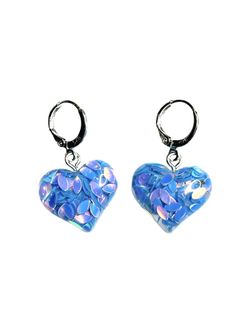 Blue Heart Earrings Shiny Reflective Glitter Silver Huggies Hoops Dangle$10Kingston, GA