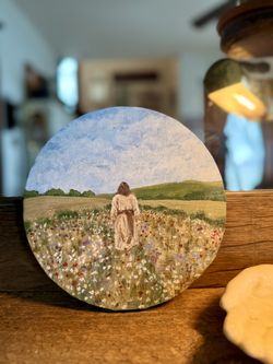 Jesus In A Field Of Wildflowers Painting 8” Diameter $60Dekalb, IL