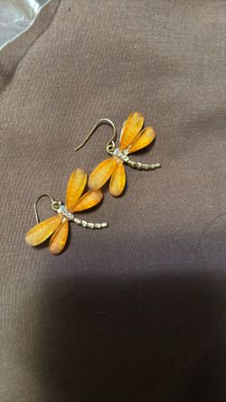 DRAGONFLY Yellow Faceted Acrylic Wings Silver Tone Rhinestone Dangle Earrings$25Oklahoma City, OK