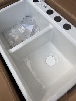 NEW Kohler Riverby 33” Double Bowl Equal Undermount Cast Iron Kitchen Sink White$600Rosemead, CA