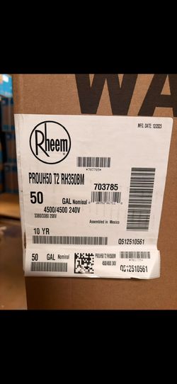 SoldBrand New Rheem 50 gallon Electric Hybrid Heat Pump Water Heater 240v$1,000Rosemead, CA
