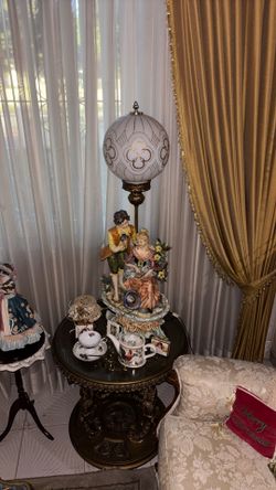 A Capodimonte porcelain table lamp with a sculptural base and floral globe shade$500Miami, FL