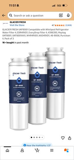 GLACIER FRESH UKF8001 Compatible with Whirlpool Refrigerator Water Filter 4, EDR4RXD1, EveryDrop Filter 4, , Maytag UKF8001, UKF8001AXX, WHR4RX$20La Mirada, CA