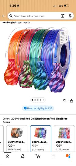 AMOLEN Silk PLA 3D Printer Filament Bundle, Shiny Dual Color Filament 1.75mm Pack, Multi Color Change 3D Printing Filament for Most FDM 3D Printer, 4 $25La Mirada, CA