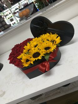 Rose Sunflowers Heart Box $150Riverside, CA
