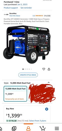 DuroMax XP12000EH Generator-12000 Watt Gas or Propane Powered Home Back Up & RV Ready, Dual Fuel Electric Start Portable Generato$1,100Sacramento, CA
