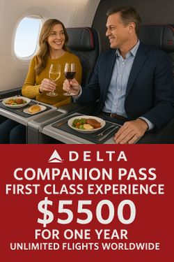 Delta First Class Companion Pass$5,500Atlanta, GA