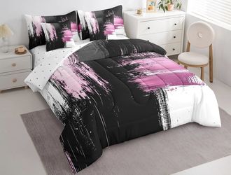 Pick Up From Mount Juliet 37122..New beautiful Modern Abstract Art 7 Piece Bedding Set Queen Size Kids Pink and Black Abstract Comforter Set with She $49Rutherford County, TN