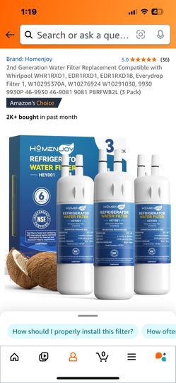 2nd Generation Water Filter Replacement For Refrigerator $25Buckeye, AZ