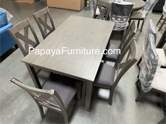 New 7Pcs Dining Set, Table And Chairs, Casual Dining Table, Chairs, Rectangular Table, Wooden Table, Grey Dining Set, Dinette Set, Table And 6 Chairs $449Anaheim, CA