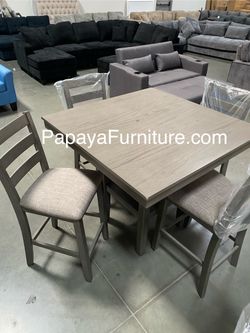 New! Counter Height Dining Set, 5pcs Table And Chairs, Dining Table, Chairs, Counter Height Chairs, Table, Grey Dining Set, Casual Table, Dinette Set $349Fullerton, CA