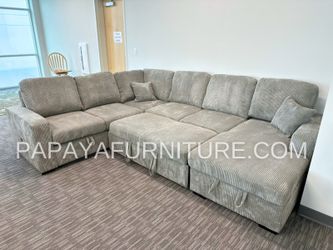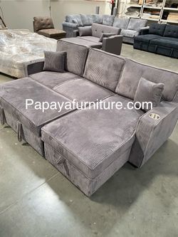 New Plush Sectional Sofa Bed, Sectional Couch, Corduroy Sectional, Grey Couch, Grey Sectional Sofa, Sleeper Sofa, Sofabed, Sectional With Storage USB$899Corona, CA