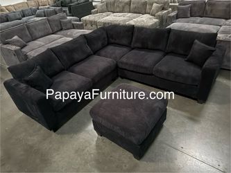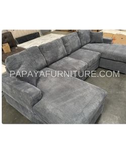 New Corduroy Sectional Sofa And Ottoman Deep Seats Ready Today , Sectional Couch, Grey Sofa, Gray Couch, Sectionals Comfy Modern Furniture In Stock $499Chino, CA