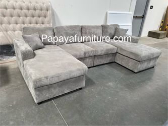New! Plush Gray Sectional, Sectional And Storage Ottoman, Sectionals, Sofa, Couch, Gray Couch, green Couch, Corduroy Sectional, USB Charger Sofa Dimen$499Whittier, CA