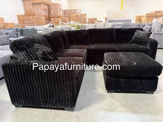 New Corduroy Black Sectional And Ottoman, Sectional Sofa, Black Couch, Black Sofa, Sectional And Ottoman, Plush Sectional Couch, L-Shaped Sofa Couch $549Corona, CA