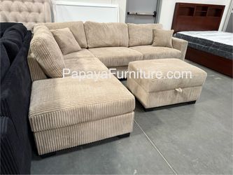 New Plush Ivory Sectional, Sectional And Storage Ottoman, Sectionals, Sofa, Couch, Beige Couch, Ivorry Couch, Corduroy Sectional, USB Charger Sofa Di$499Chino Hills, CA