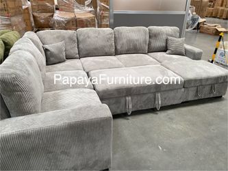 New! 120” Gray Corduroy Large Sectional Sofa Couch, Sectional, Sofa, Couch, Plush Sofa Bed, Sleeper Sofa, Sofabed, Pull-out Sofa Bed Couch,Large Couch$899Chino, CA
