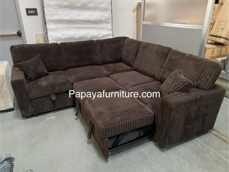 New Plush Chocolate Sectional Sofa Bed With Storage, Brown Sectional, Sofa, Couch, Corduroy Sectional Couch With Pull-out Bed, Sofabed, Sleeper Sofa $699Chino, CA