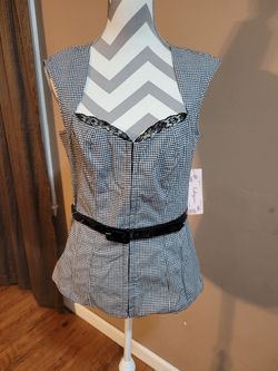 6 Degrees Black and White Gingham Blouse with Lace$15Tobaccoville, NC