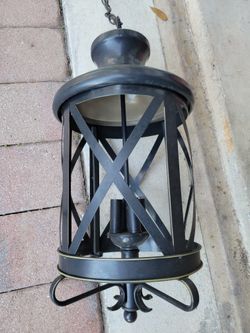 outdoor light fixture lantern dark black iron light like new 24x12 olus 6' chain