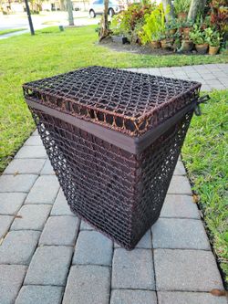 Boho rattan clothes brown hamper basket with liner lid handles 24x14x19 for $28$28Pembroke Pines, FL