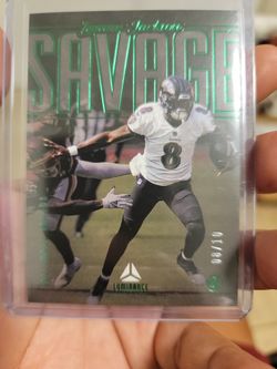 Lamar Jackson Savage Insert Jersey Number #8/10 Card$70Stockton, CA