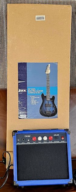 LyxPro AGL-20 20-watt kids' electric guitar amplifier, part of a complete beginner's kit.