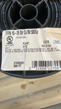 500 Foot Spools Of TFFN 16–26 Stranded Copper Full Wire$50San Jacinto, CA