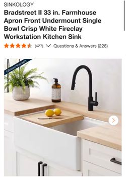 SINKOLOGY Bradstreet II 33 in. Apron Front Undermount Single Bowl White Fireclay Workstation Sink$420Homer Glen, IL