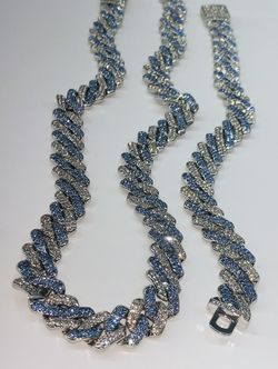 Stainless Steel Blue & White Cuban Link Necklace And Bracelet $100Las Vegas, NV