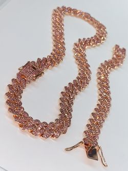 Stainless Steel Pink Rose Gold Cuban Necklace And Bracelet $100Las Vegas, NV