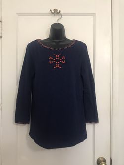 ✔️Tory Burch Navy Blue Top with Orange Embroidery 🧡 Stylish navy blue top featuring orange embroidery 🧡 $45Whittier, CA