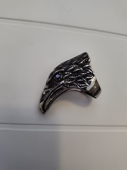 Stainless Steel Raven Men's Ring With Black Crystal Eyes $15Dallas, TX