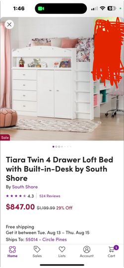 Tiara Twin, Four Drawer Loft Bed With Built-In Desk By Southshore$200Lino Lakes, MN