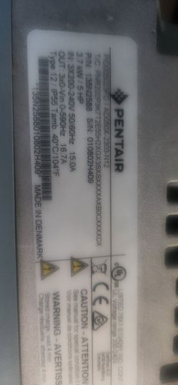 Pentair ACU Drive XS Variable Frequency Drive | 5HP | 3 Phase | NEMA-12 | 200-240 VAC | AD050X-2303-N12$2,800Fremont, CA