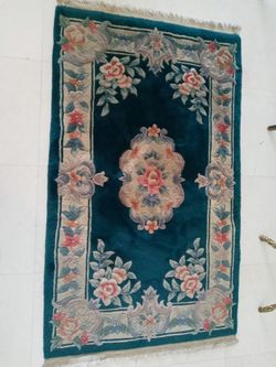 $25.00 Beautiful Oriental Hand Knotted Rug 64"× 37" Sculptured Dark Green Peach Flowers$25Hillsboro Beach, FL